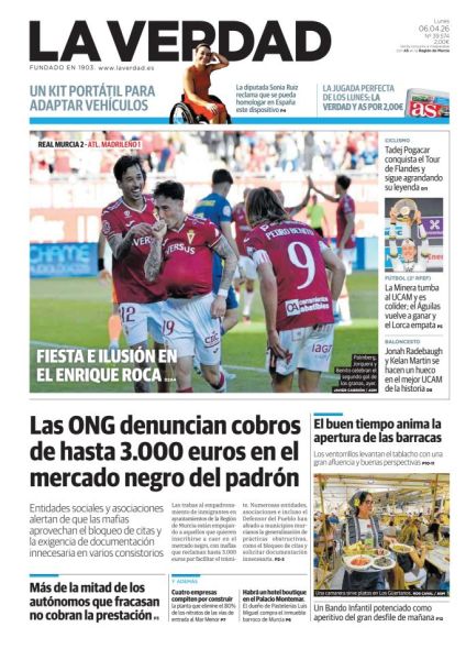 El diario La Verdad, fundado en 1.903, es el periódico líder de audiencia y el medio digital más visitado de la Región de Murcia. Integrado en el grupo Vocento, su principal seña de identidad es la independencia y la apuesta por los intereses ciudadanos.